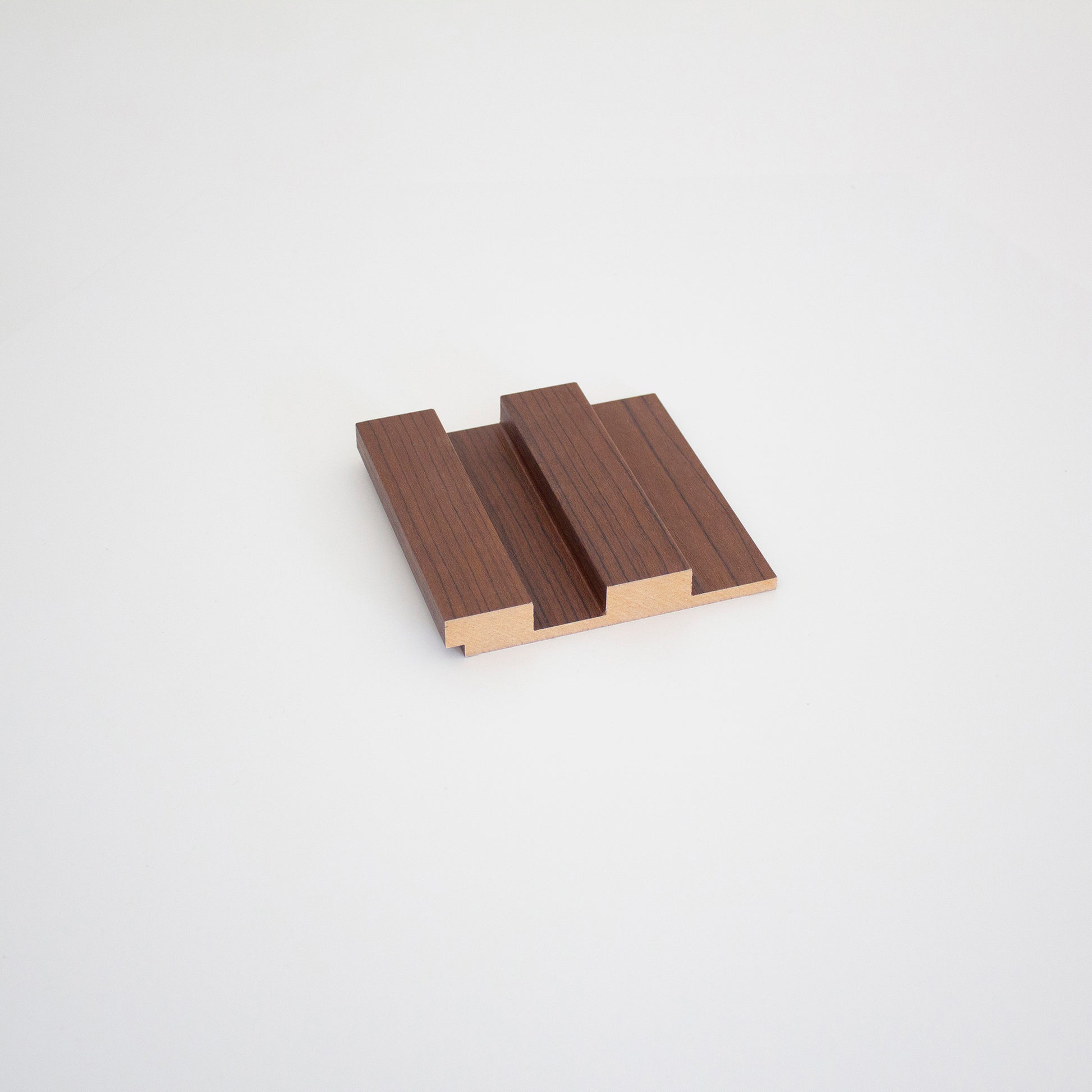 Elegant grooved MDF wall panel in dark brown, imitating wood.