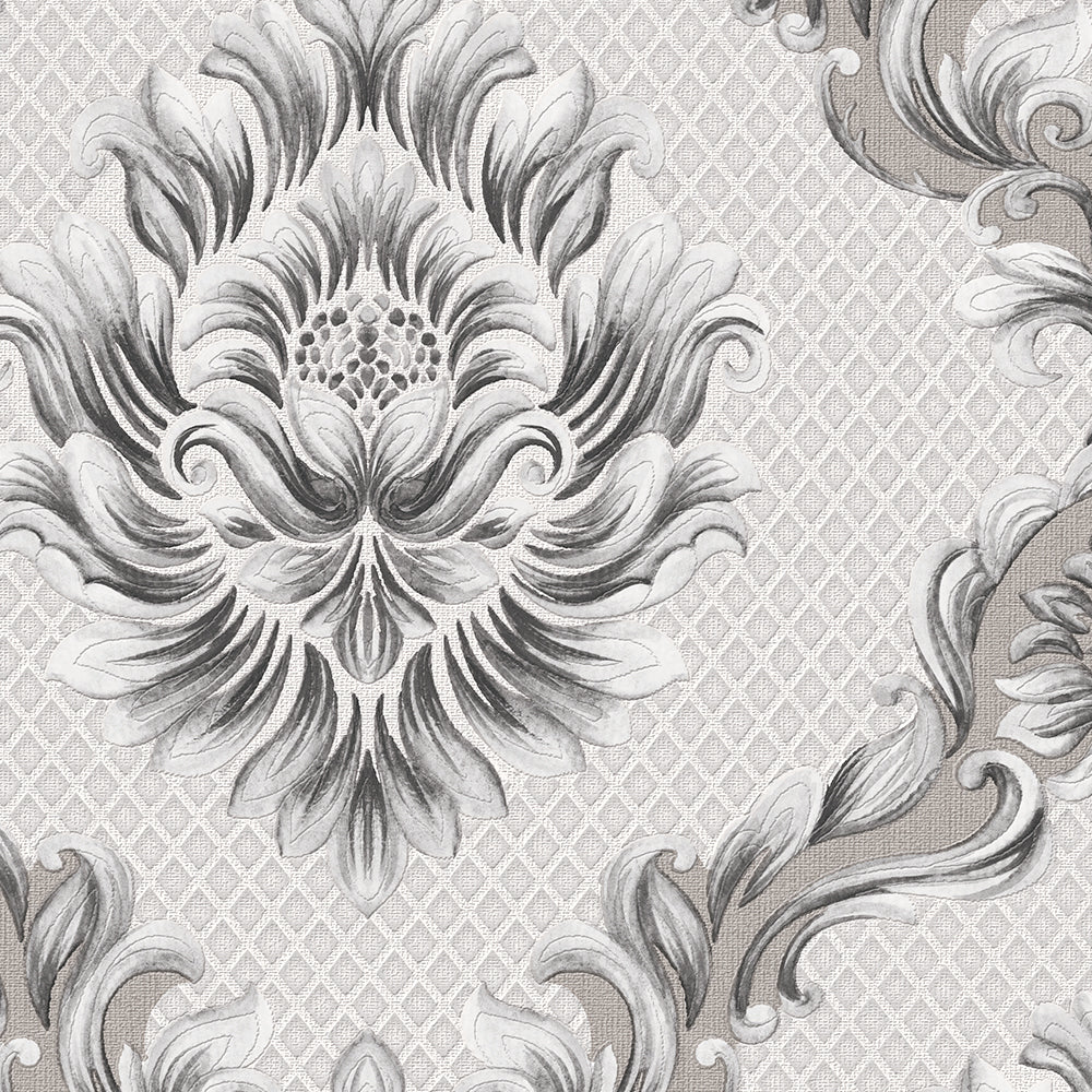 Tapeta z ozdobnym wzorem w kolorze szarym.