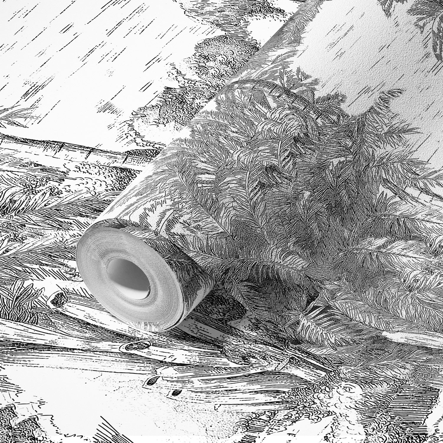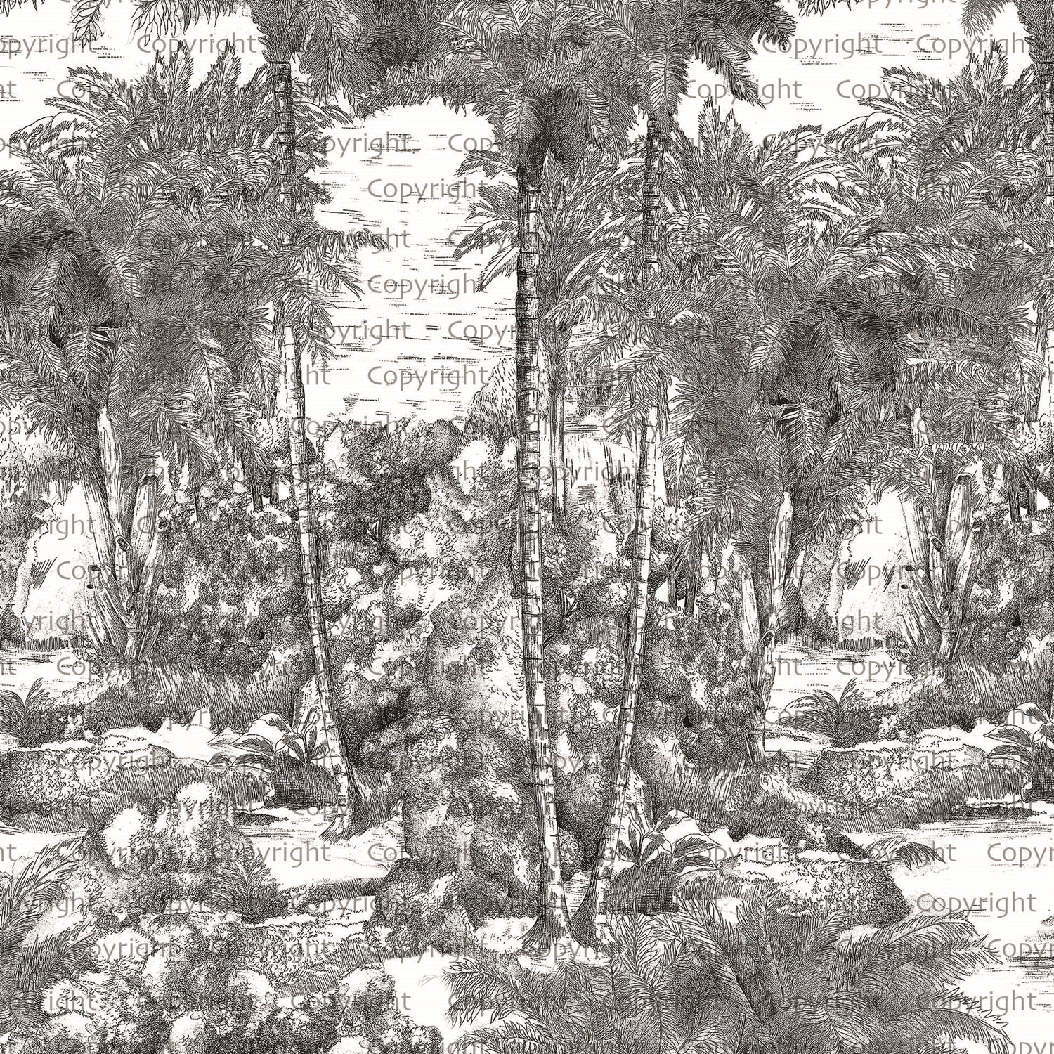 - wzór palm, drzew w formie rysunku, szkicu