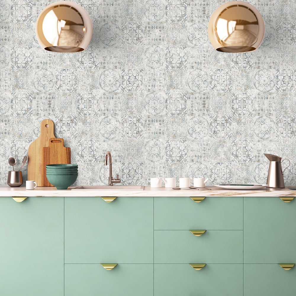 Oryginalna tapeta z ozdobnym wzorem w kolorze szarym.