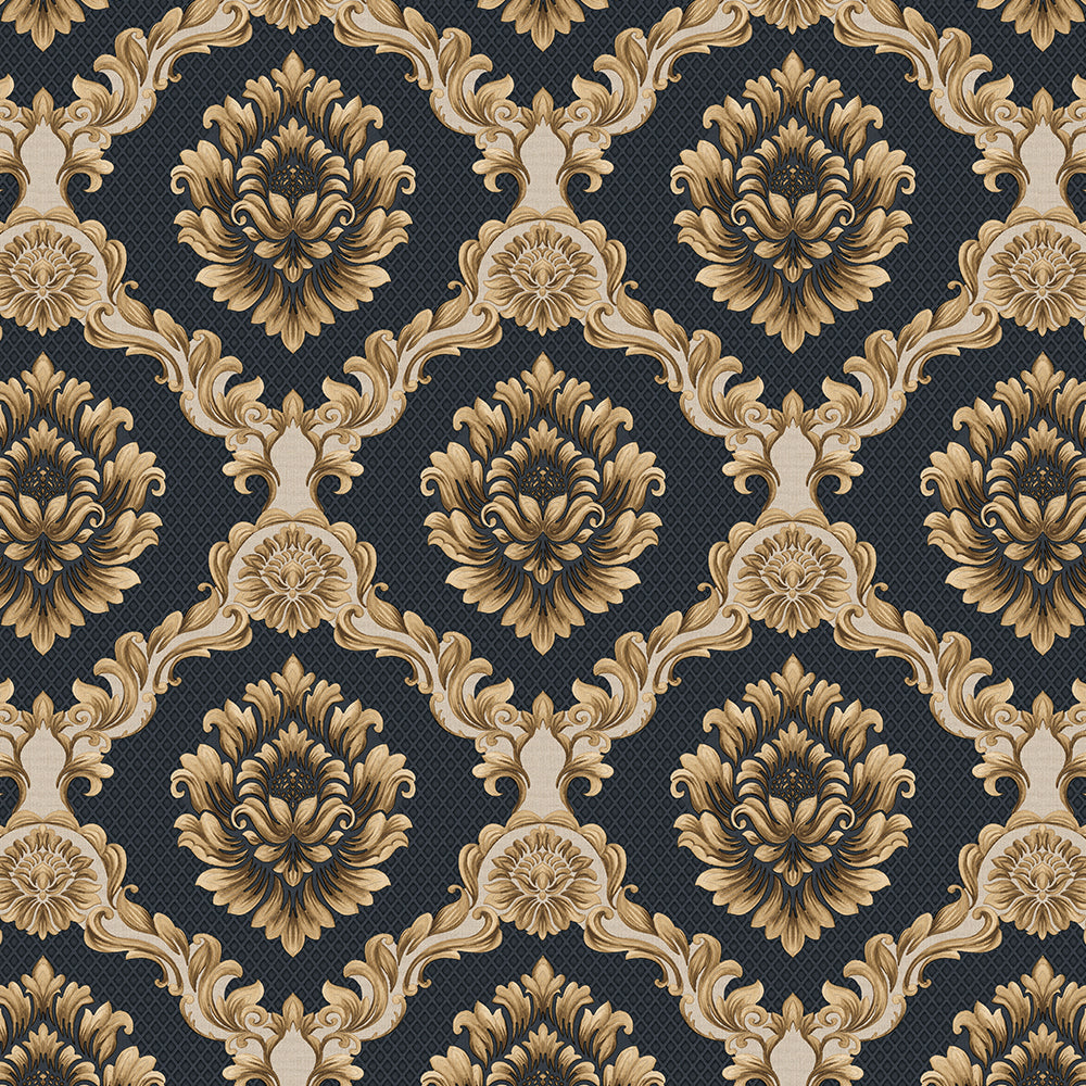 Trwała, mocna winylowa tapeta, która doda przytulności i uatrakcyjni każde pomieszczenie. Aksamitne, satynowe wykończenie winylu z delikatną strukturą odczuwalną w dotyku. Ornament "lwi kwiat" na grafitowym tle.